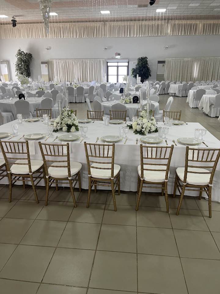 The reception space was transformed into a bright and romantic environment, where simplicity met luxury — proving that a clean, minimal palette can create the most striking visual impact.