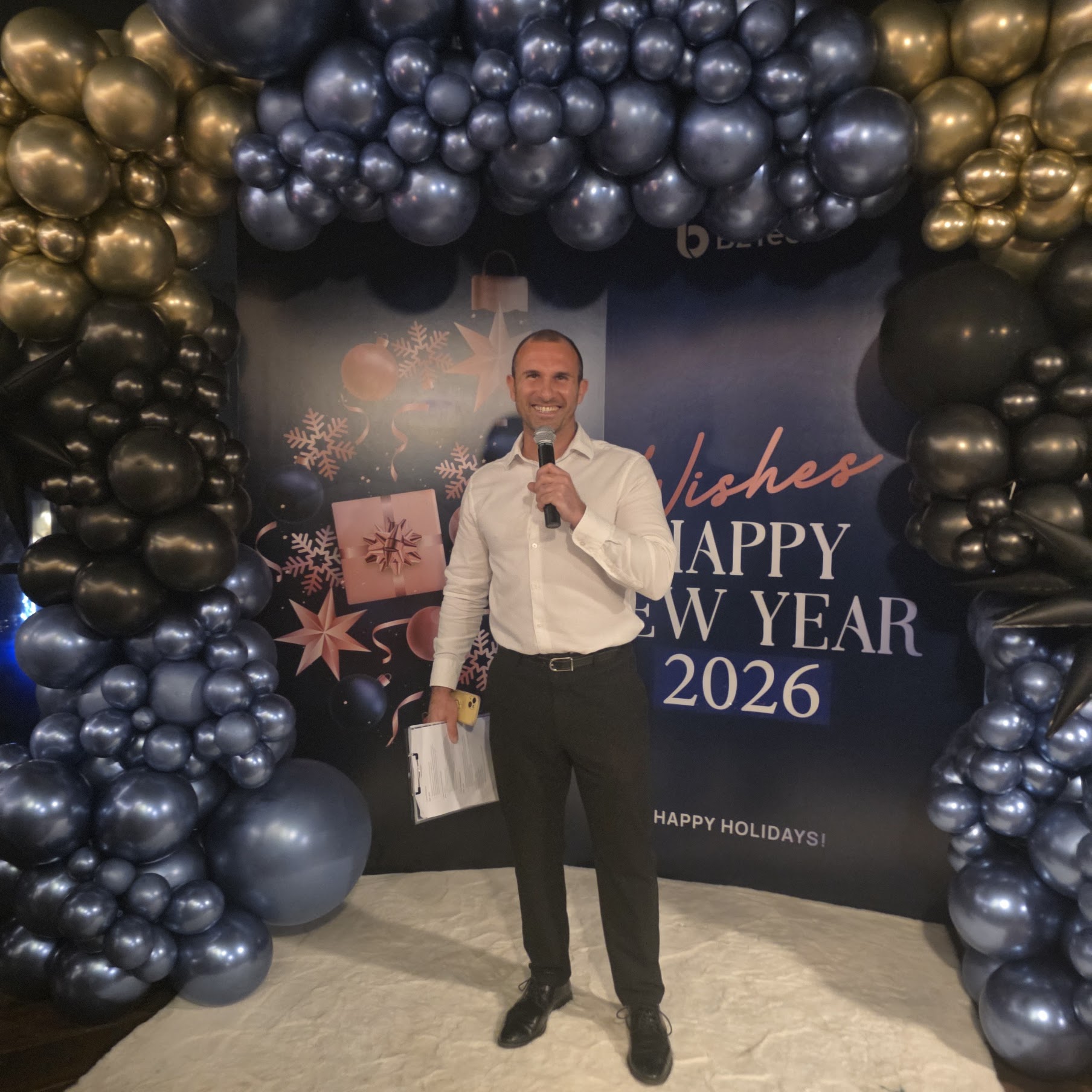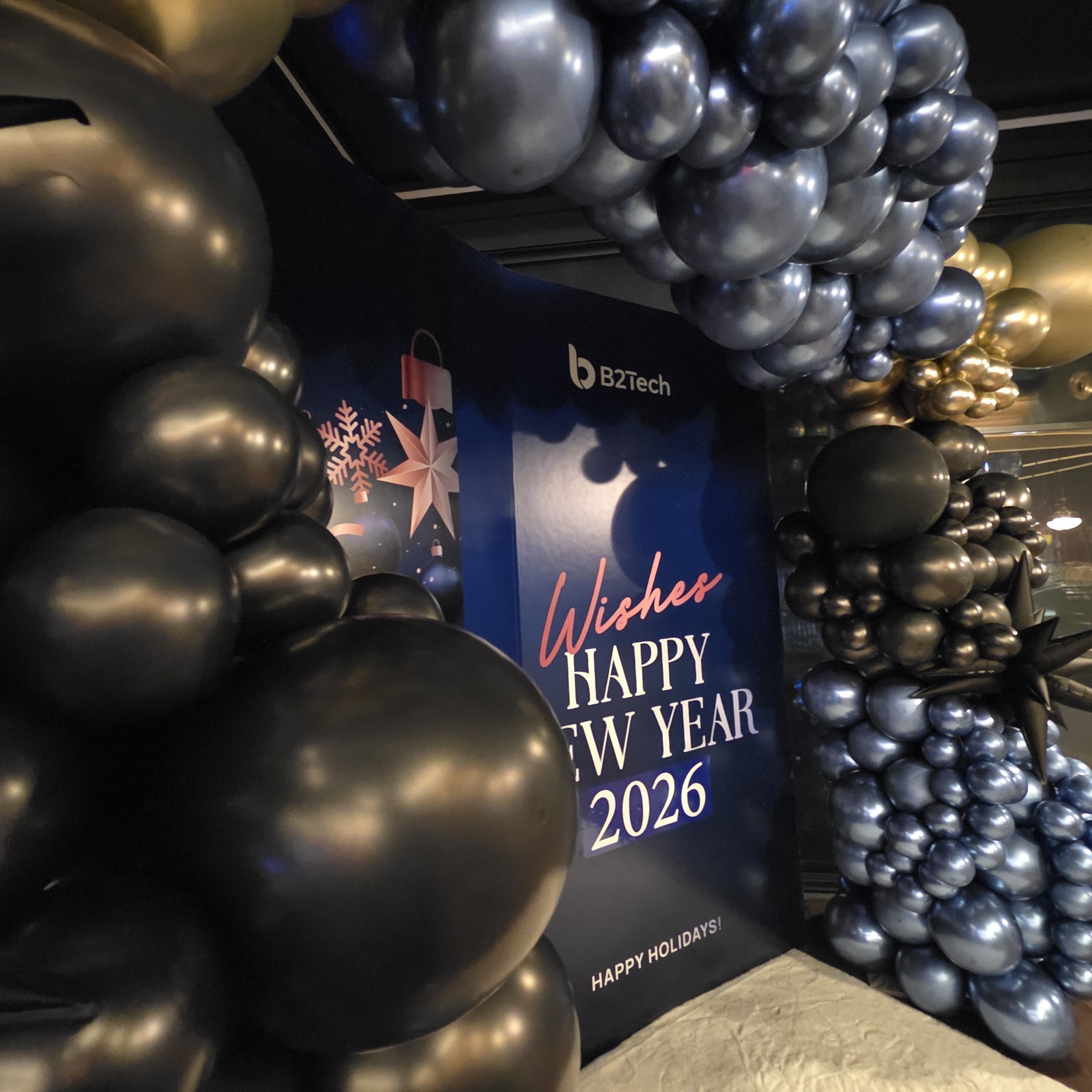 For B2 Tech’s corporate New Year’s Eve party, we designed a bold and sophisticated setup that reflected the company’s modern identity and dynamic spirit.