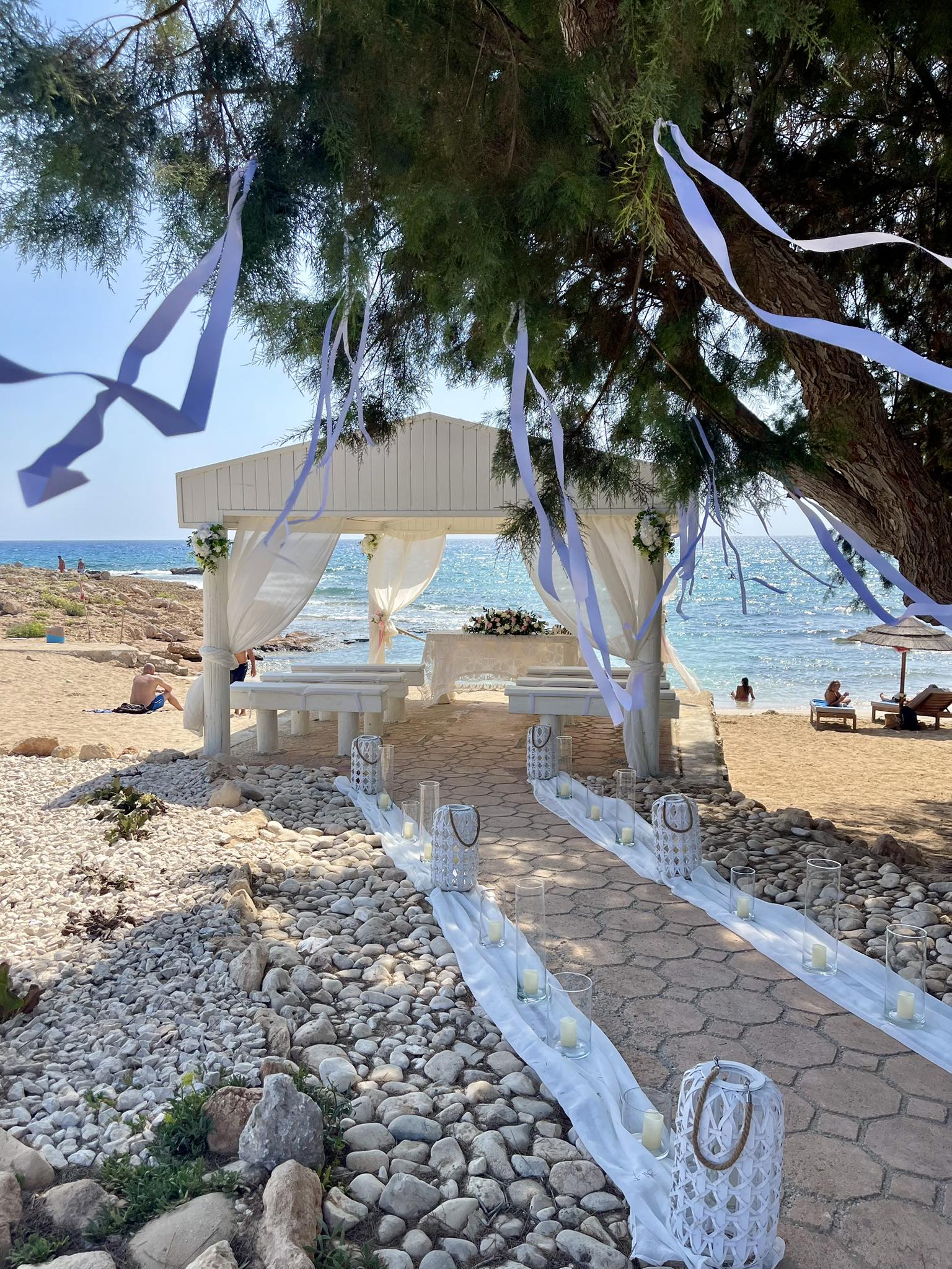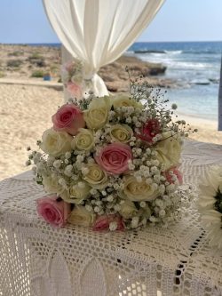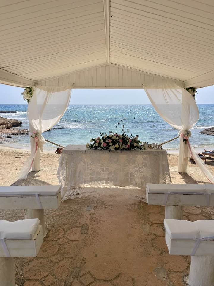 For this wedding, the focus was on creating a refined yet effortless look that blended perfectly with the coastal location. Soft tones, delicate floral arrangements, and carefully selected decorative elements were used to enhance the scenery without overpowering it.